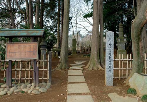 古河公方5代目の義氏(よしうじ)は天正10年(1582)古河城で死去したが、葬儀は翌年正月久喜(埼玉県)甘棠院で行われ、同所に葬られた。当地は義氏の娘氏女(うじひめ)の法号により徳源院と称した寺の跡であるが、徳源院が存する以前から足利氏ゆかりの寺院があったことから、遺骸の一部が葬られたものと考えられている。 正面の石碑は大正15年に建てられた「古河公方義氏公墳墓」の標石、左の石囲いの中は氏女の宝篋印塔(ほうきょういんとう)である。これら以外に、氏女の一子義親の宝篋印塔、七地蔵を刻んだ石幢(せきどう)、義氏の遺骸の一部が葬られたと考えられている土塚が残る。