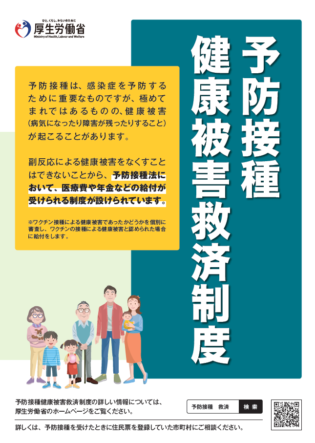 厚生労働省「予防接種健康被害救済制度」についてはこちらをご確認ください。