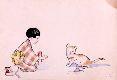 本年で18回目を迎えた、『コドモノクニ』の原画を活用して絵に付ける詩や物語を募集する「1ページの絵本」。今回は、岩岡とも枝「猫に首輪を」など、過去の「1ページの絵本」で使用した原画を紹介します!