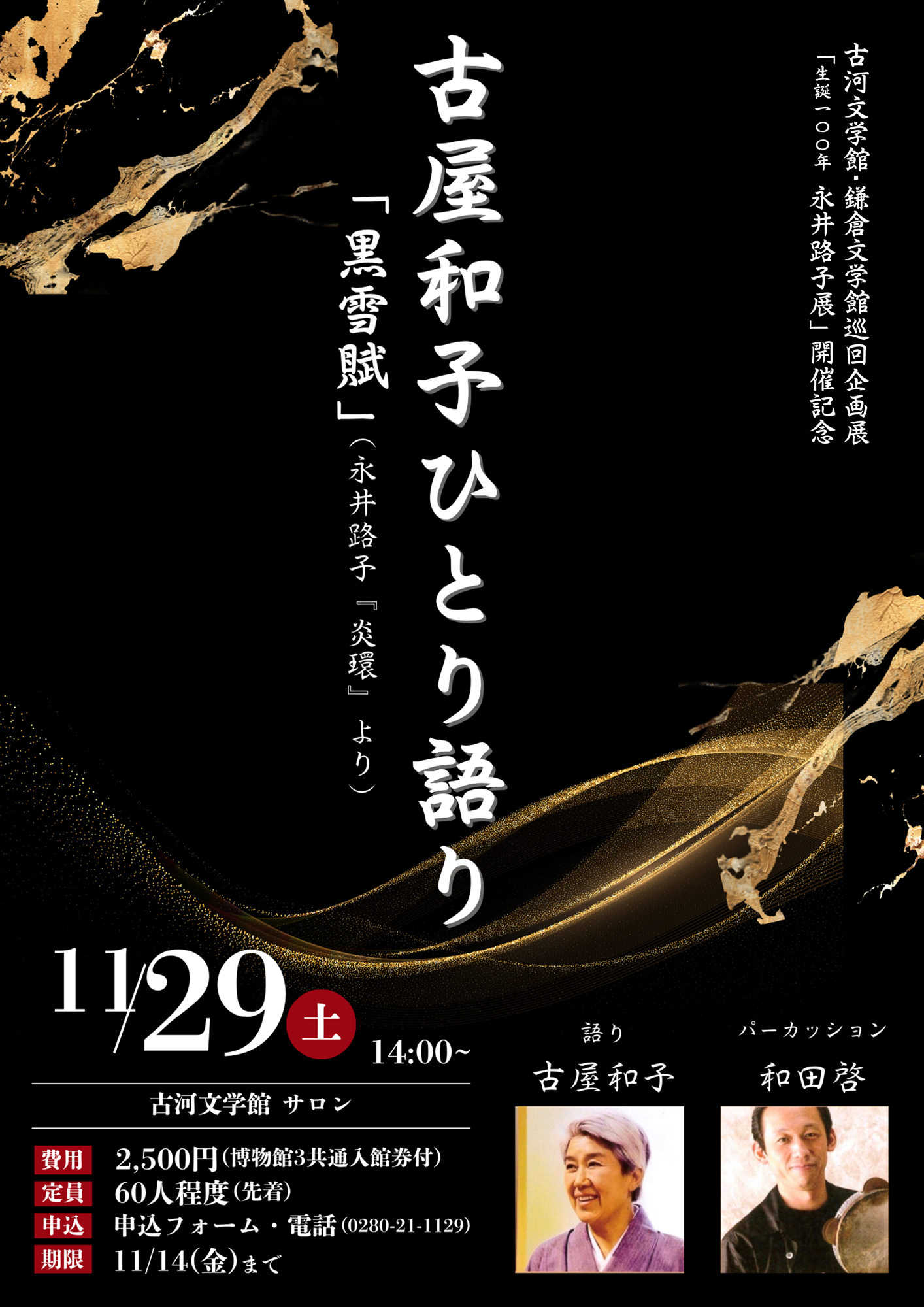 巡回企画展「生誕100年 永井路子展」の開催に伴い、語りの名手・古屋和子氏によるひとり語りの会を開催します!