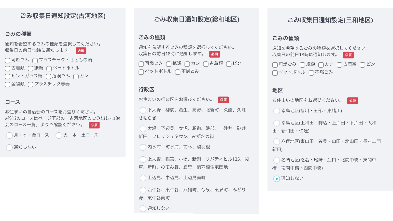 ゴミ出しカレンダー、分別検索、通知設定ができます
