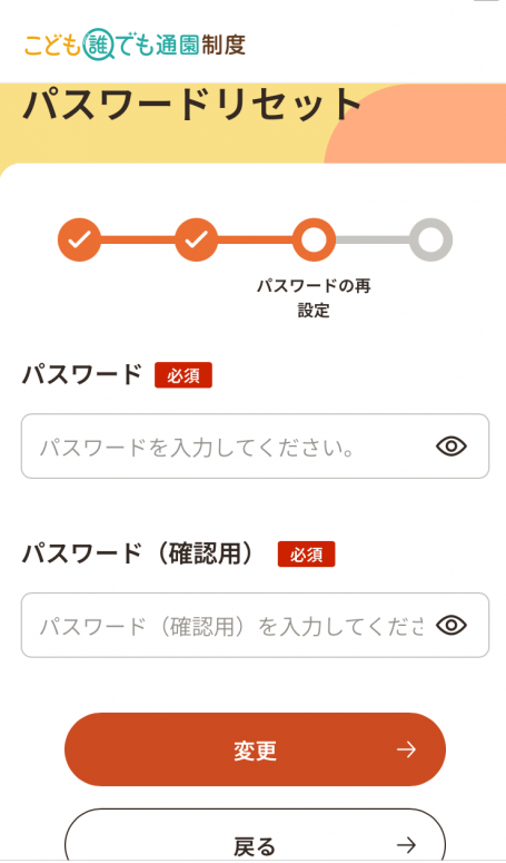 「パスワードリセットのご案内」⇒「パスワードリセット」⇒「パスワード設定完了」