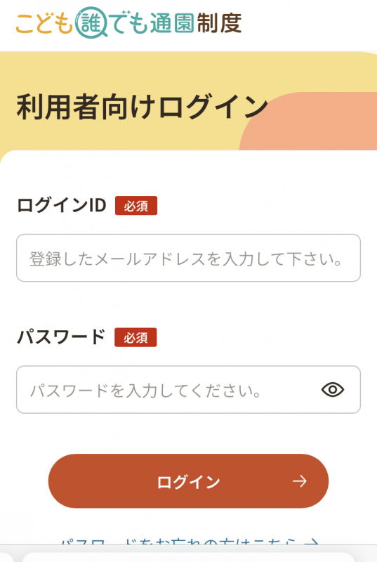 こども誰でも通園制度(乳児等通園支援事業)を利用するにあたり、総合支援システムの操作が必要となります。はじめて利用する場合は以下の方法でログインしてください。