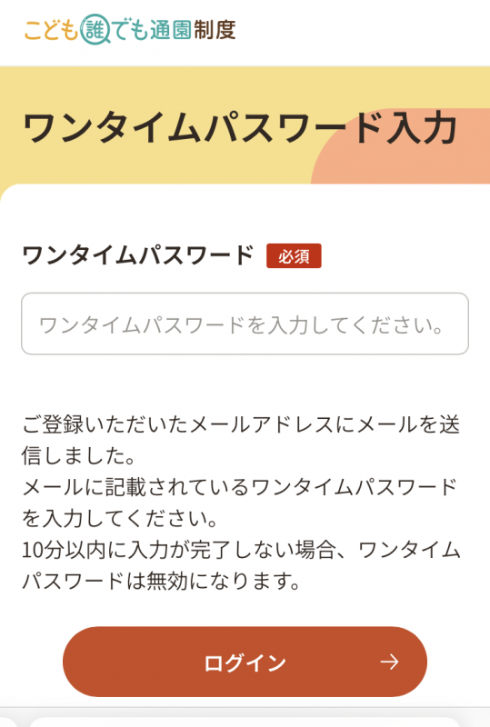 ※ワンタイムパスワードはログインの度に必要です。情報漏えいのリスクから推奨はしませんが、ワンタイムパスワードの設定を「無」に変更することもできます。ご希望の方は、「5 利用者(保護者)とこどもの情報登録」後、利用者情報管理から設定を変更してください。