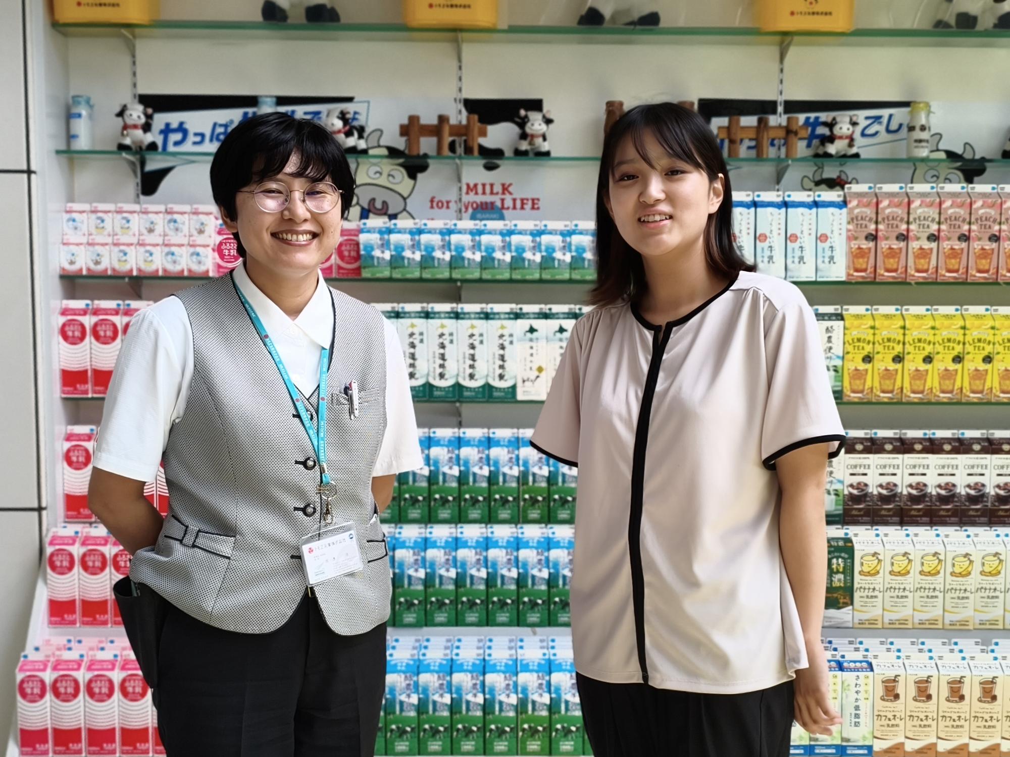 今回の訪問では、まず工場を見学させていただきました。普段見ることができない牛乳などのチルド食品の製造工程に、学生は興味津々でした。その後、社員の方からワーク・ライフ・バランスへの取り組みについて説明を受け、「企業の持続的成長にとって、最も重要なのは社員」という考え方のもと、社員の健康や幸福を大切にしながら企業経営が行われていることを知りました。