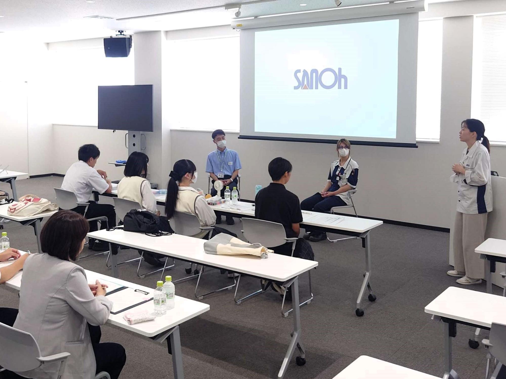 特に印象的だったのは、育児休業の取得率が男女ともに100%であることや、小学校卒業まで育児短時間勤務ができる制度です。誰もが働きやすい環境づくりに力を入れていることがわかり、学生からは驚きの声も聞かれました。業務効率化のためのAIやロボットの導入、資格取得補助など、社員を支える工夫が随所にあり、障がい者雇用も積極的に行っているとのことでした。