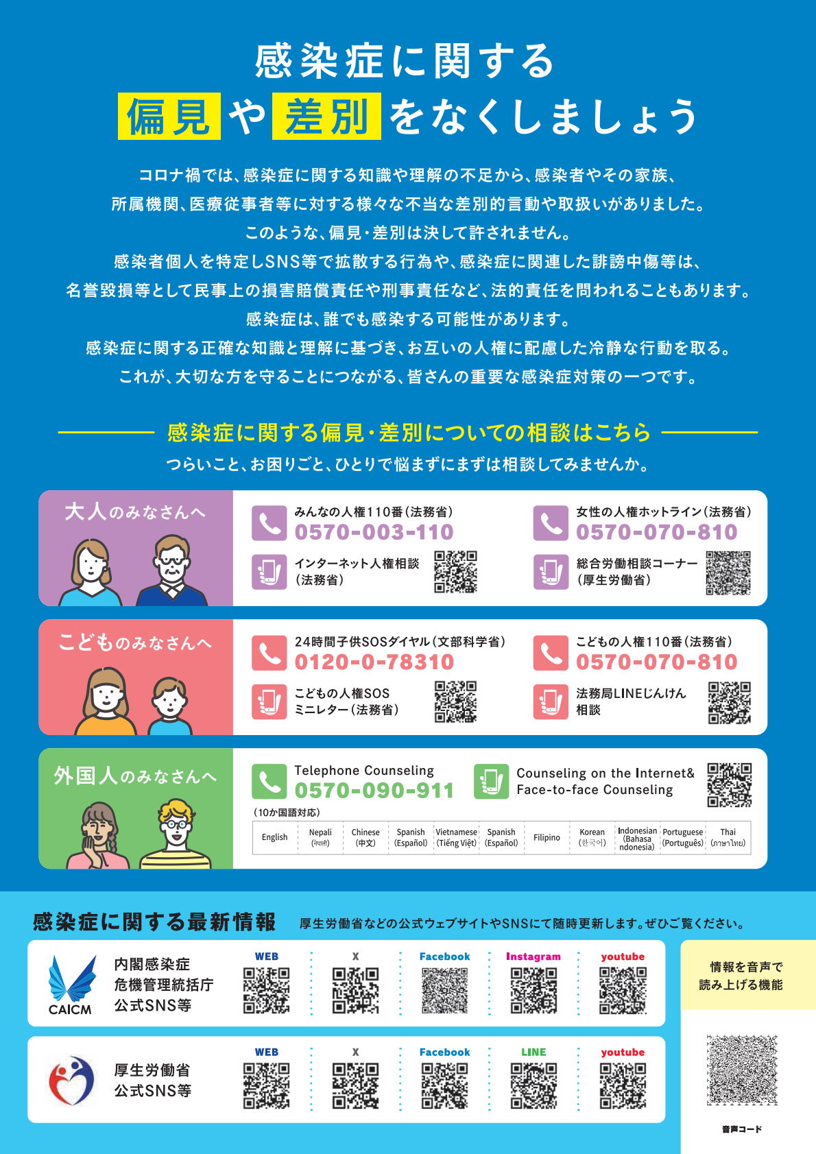 内閣感染症危機管理統括庁リーフレット「感染症に関する偏見や差別をなくしましょう」