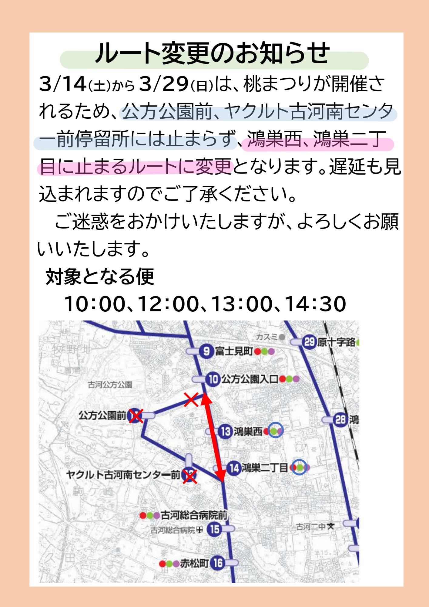 「ぐるりん号」イベントに伴うルート変更のお知らせ