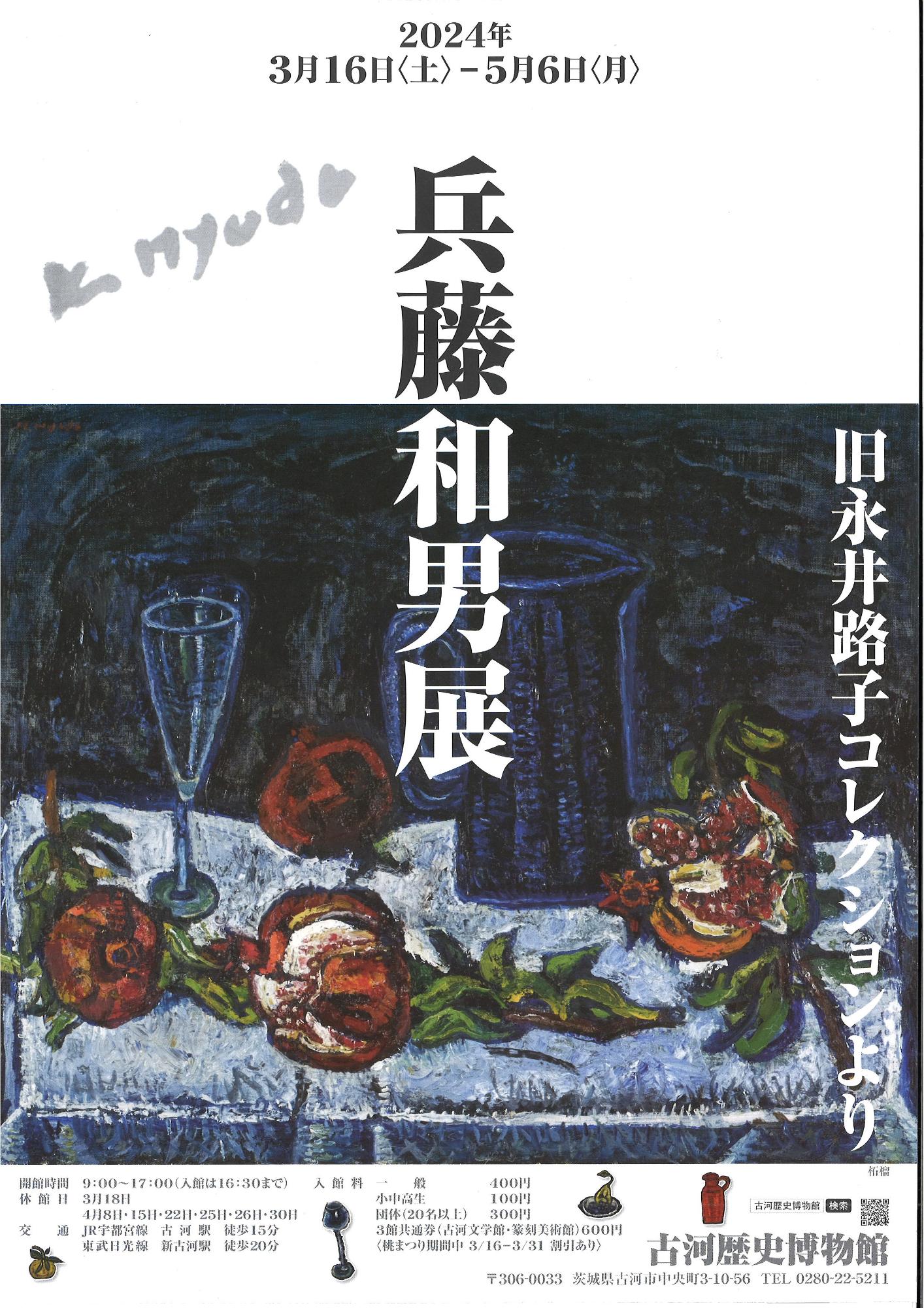 兵藤氏は、古河出身の歴史小説家・永井路子と親交も深く、永井氏は兵藤作品を収集しています。兵藤氏の没後、これらの作品20点余りは、永井氏の意向によって、ご遺族にその処遇が託されることになり、このたび当館に寄贈いただいた次第です。