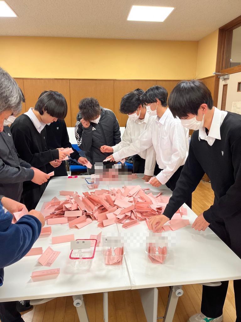 12月15日に、古河市選挙管理委員会と古河第一高等学校選挙管理委員会合同で、開票作業を行いました。