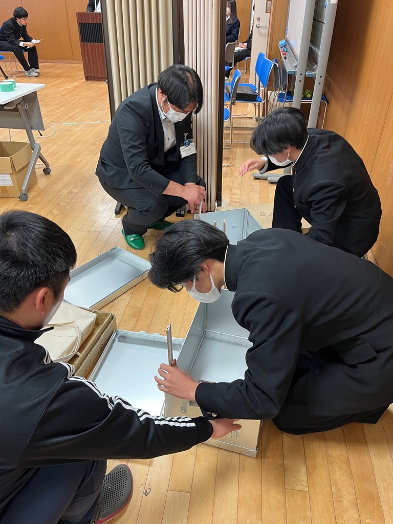 投票箱の組み立て方を指導しました
