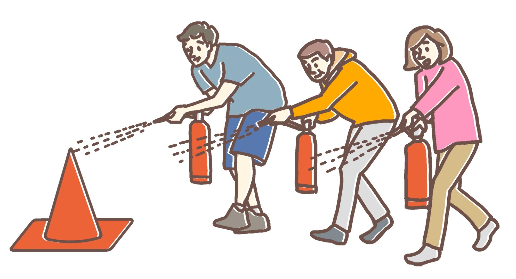じしんや おおあめ(たくさんふるあめ)などの さいがいが おきた ときのために、 あんぜんに にげる れんしゅうを したり、 かじが おきたときの ために、 ひをけす れんしゅうをします。 ほんとうに さいがいが おきたとき、 まちのひとたちと きょうりょくする ことが できます。