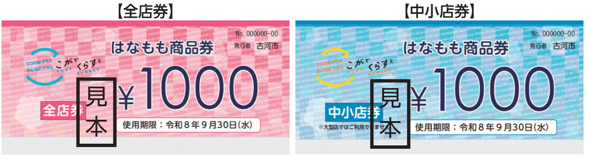 大型店以外で使える「中小店券」1,000円×3枚=3,000円分